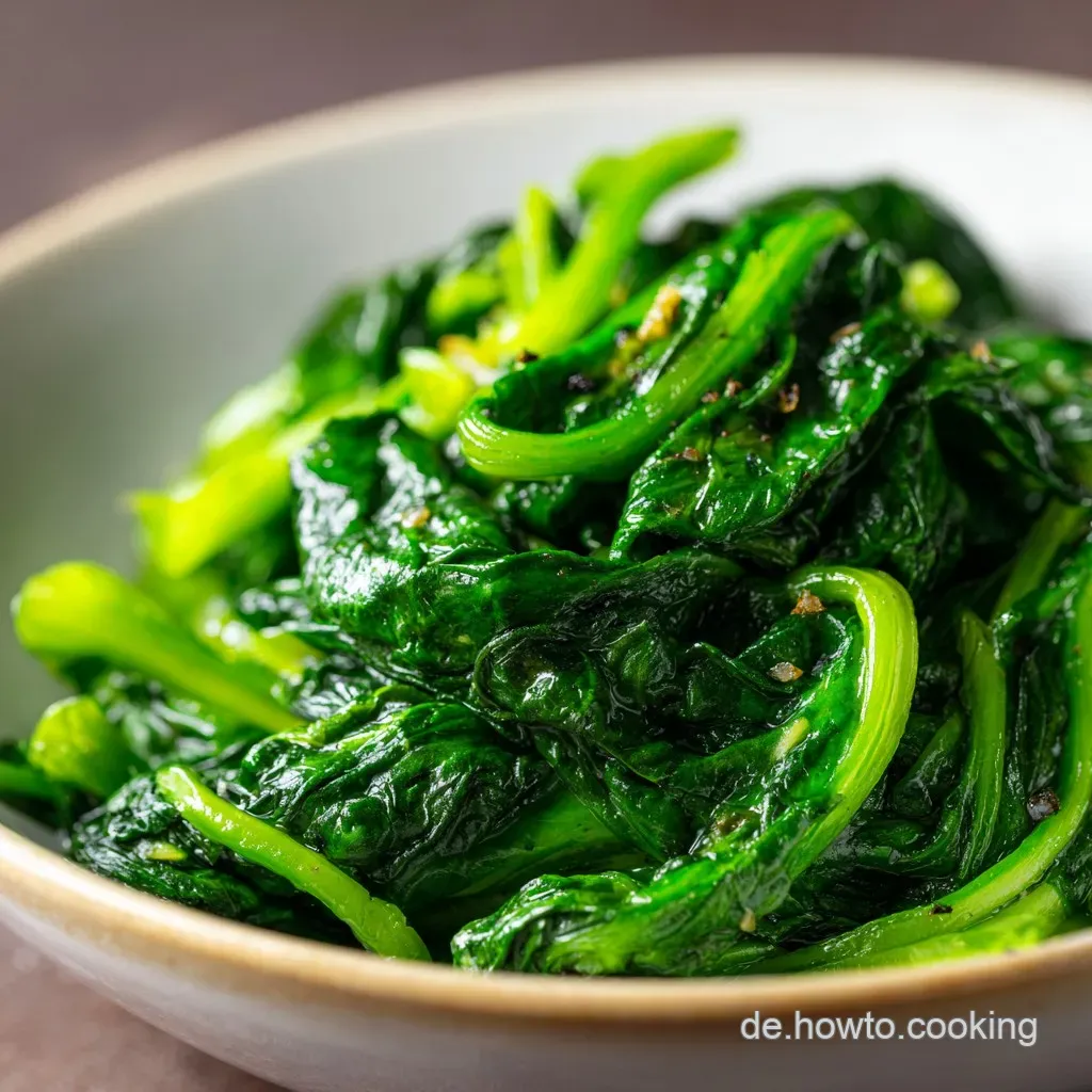 Chlorophyll Sicherung: Zu langes Erhitzen setzt pflanzliche Säuren frei, die das Magnesium im Chlorophyll ersetzen und den Spinat grau braun färben. Ein kurzer "Flash Cook" bei hoher Hitze neutralisiert diesen Prozess und bewahrt das brillante Grün.