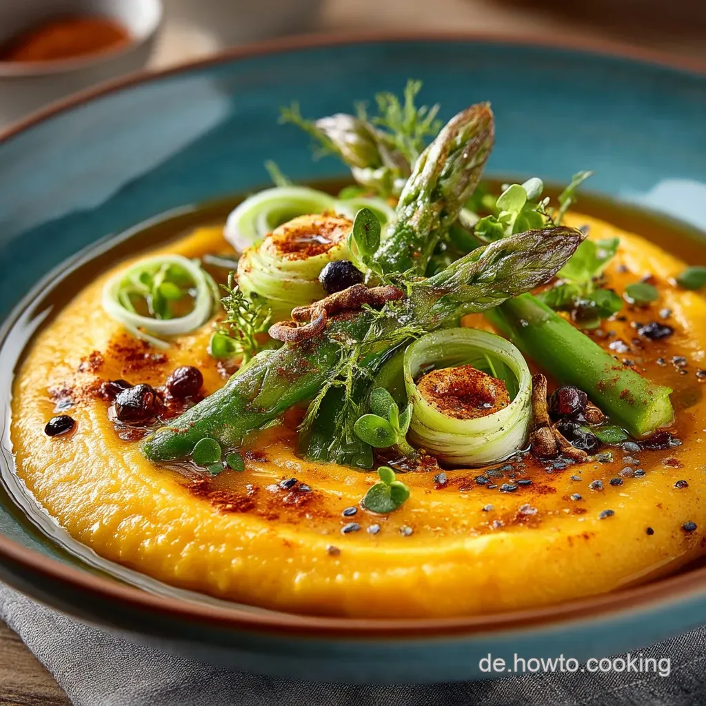 Aufgrund seiner reichen Farbe und des komplexen Geschmacks dient dieser Stampf als wunderbarer Kontrast zu gebratenem Zanderfilet oder einem perfekt gegarten Schweinebraten. Für eine vegetarische Mahlzeit passt er hervorragend zu karamellisierten Walnüssen und einem Klecks Sauerrahm, der die Süße des Kürbisses aufgreift.