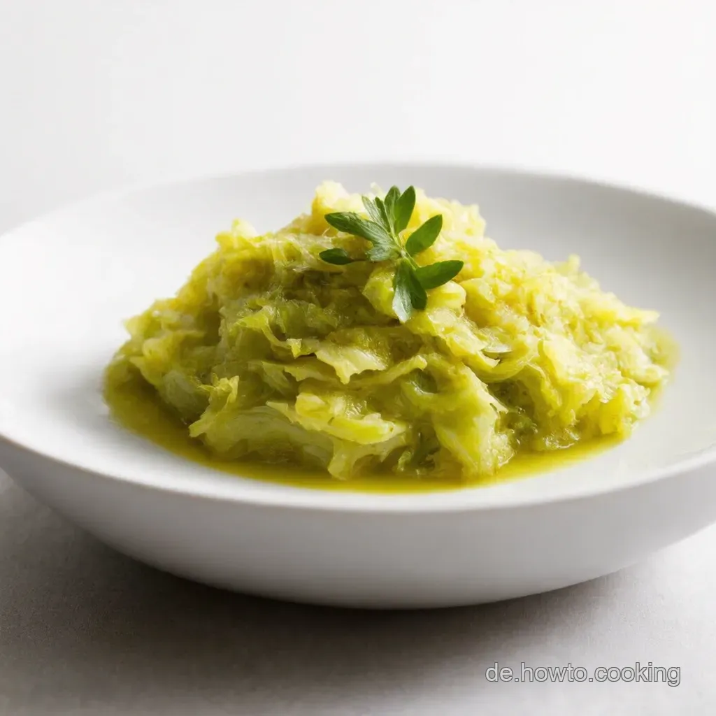 - Den Grünkohl, 500 ml Gemüsebrühe, 1 TL Senf und eine Prise Zucker hinzufügen. Mit Salz und Pfeffer abschmecken.