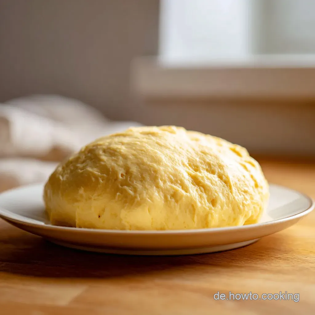 - Intensives Kneten: Knete den Teig für mindestens 8 Minuten per Hand oder 5 Minuten mit der Maschine, bis er glatt ist und sich vom Schüsselrand löst.