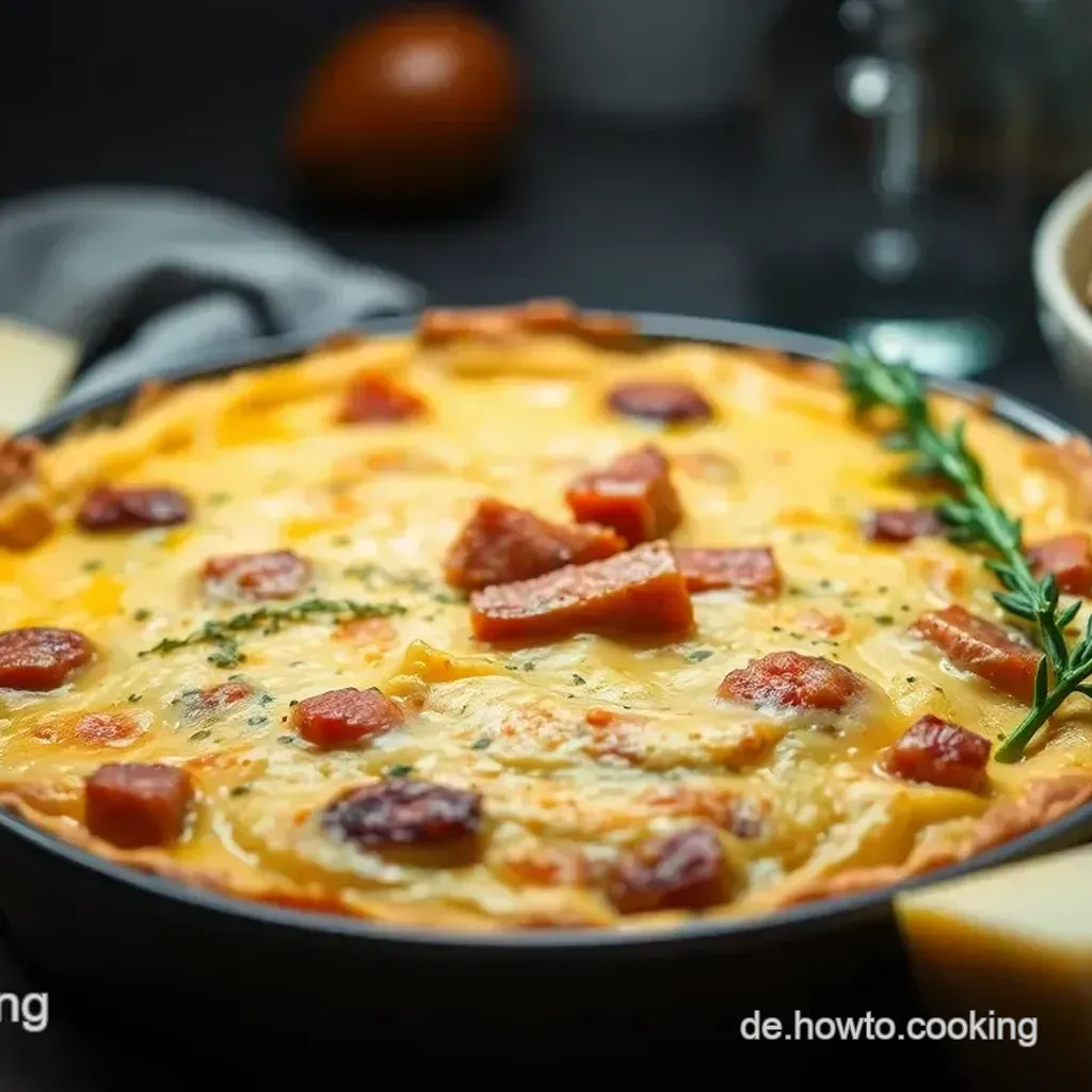 - Eier Sahne-Mischung: Eier und Sahne verquirlen, würzen und über die Füllung gießen.