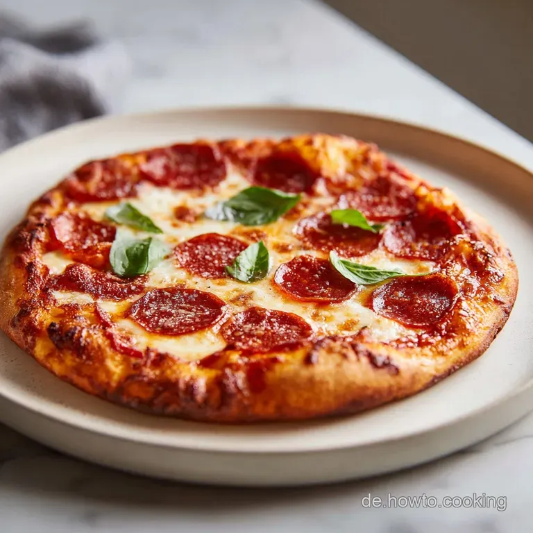 - Garniere die fertige Pizza mit frischem Basilikum und einem Spritzer Olivenöl.
