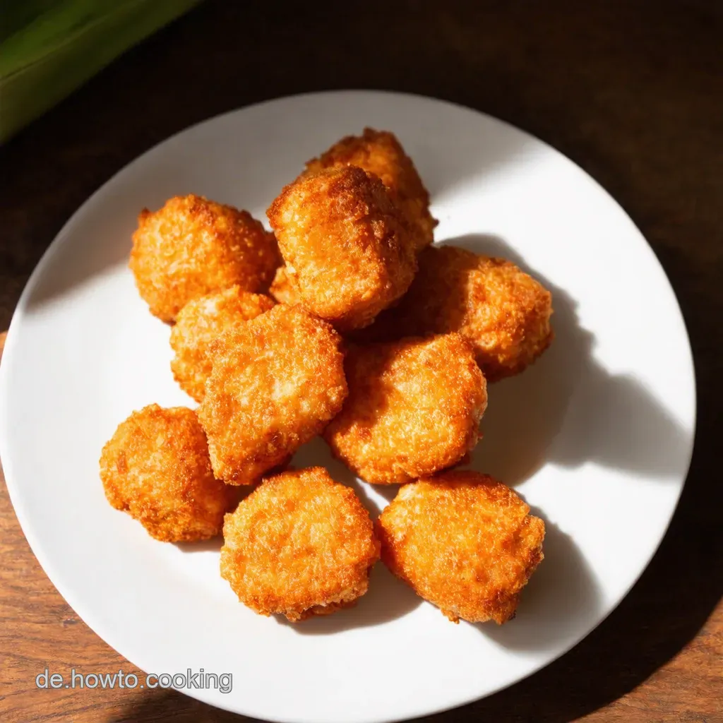 - Braten: Öl in der Pfanne erhitzen. Bei mittlerer Hitze die Nuggets goldbraun braten, ca. 3-4 Minuten pro Seite .