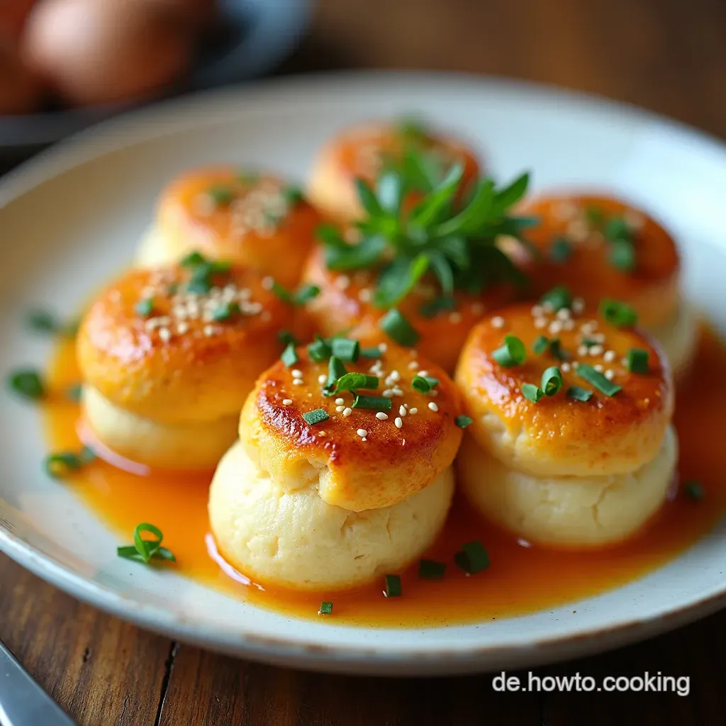 - Die Eier vorsichtig in den kochenden Sud legen.