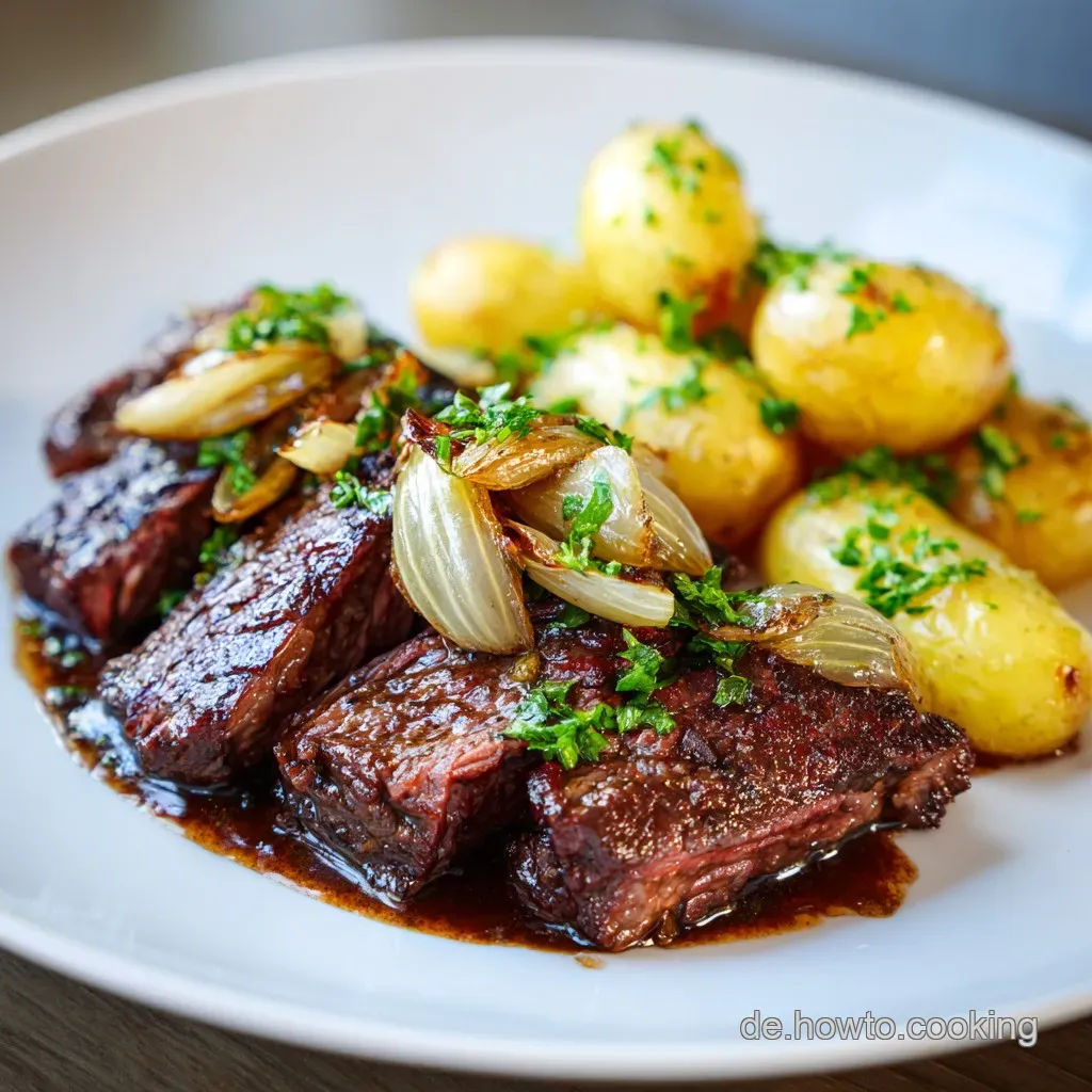 Wenn du Lust auf mehr klassische Schmorgerichte hast, die ebenfalls mit Fleischsaft und Tiefe arbeiten, probier unbedingt mal mein Rindfleisch Eintopf rezept. Dort nutzen wir eine ähnliche Technik, allerdings über einen längeren Zeitraum, um das Bindegewebe vollständig zu schmelzen.