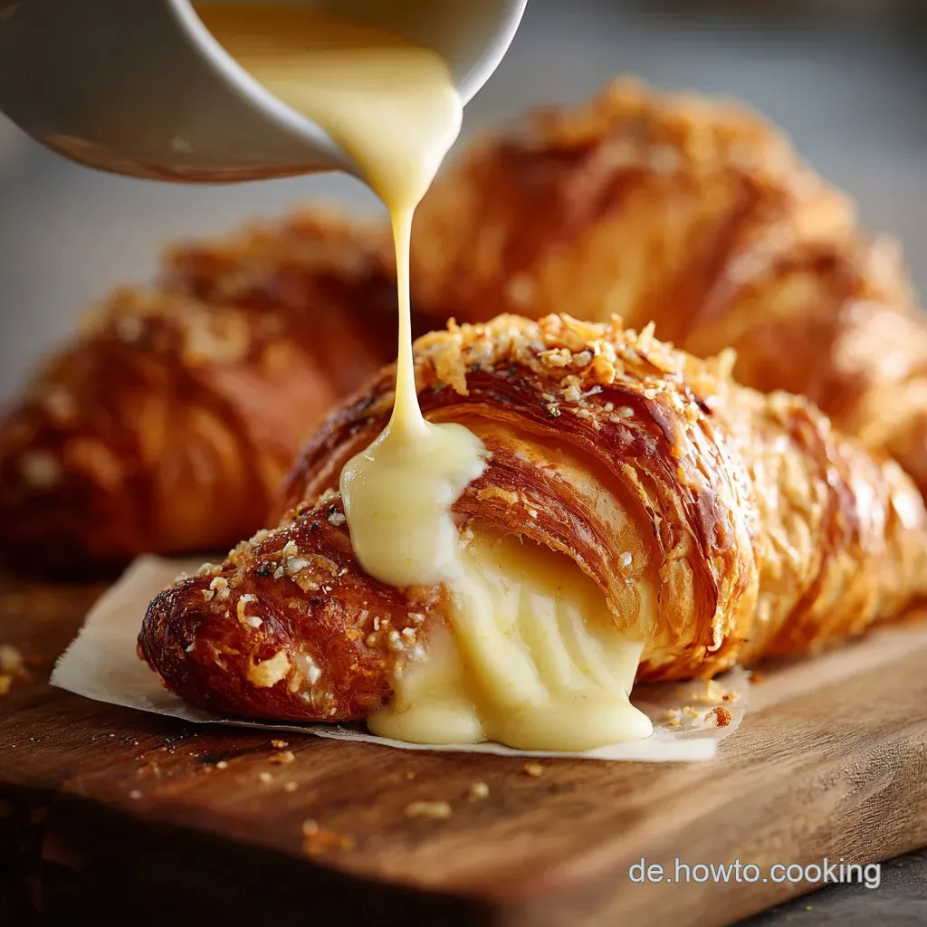 Unsere Aufgabe ist es lediglich, die Cremerolle so zu platzieren, dass sie während des Backens nicht austritt, aber genug Feuchtigkeit spendet, um das Innere besonders saftig zu halten. Dies ist ein hervorragendes Beispiel für ein gelungenes Croissant Rezepte Upgrade ohne großen Aufwand.