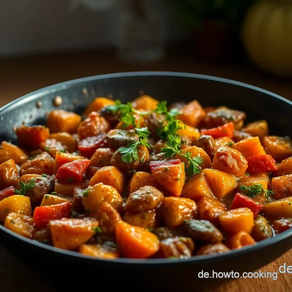 Das Rezept ergibt insgesamt vier Portionen, perfekt für ein geselliges Essen mit Freunden oder Familie. Wenn du mehr Gäste bewirten möchtest, kannst du die Zutaten einfach verdoppeln – achte jedoch darauf, dass deine Pfanne groß genug ist, um das gleichmäßige Garen zu ermöglichen!